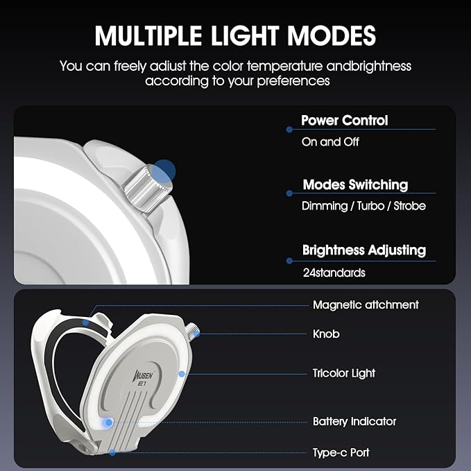 WUBEN E1 EDC 充電式セルフィーライト ポータブルリングライト